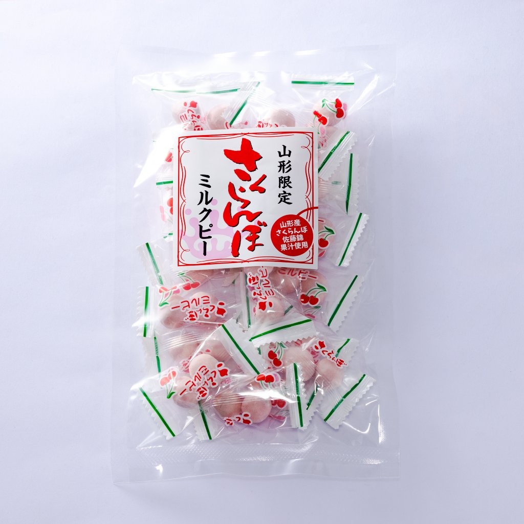 ミルクと山形県産さくらんぼ(佐藤錦)の果汁でコーティングしました。