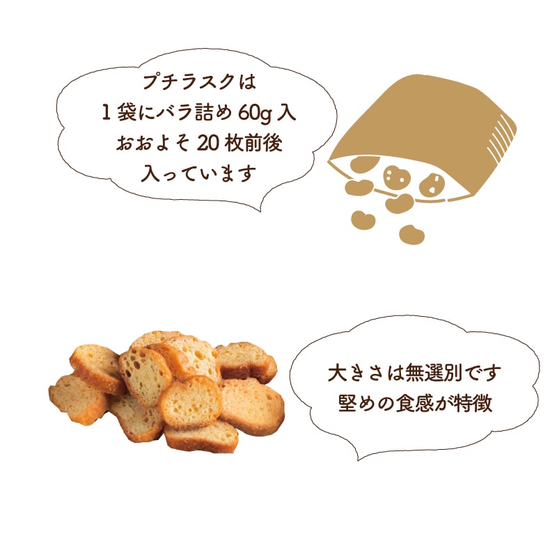 固い食感のおつまみ系スナックラスク。お酒が進みます!もちろんおやつにも!専用の細いパンで作ったラスクで、ボリッとした噛み応えと濃いめの味付けが特徴です。食べきり60gサイズ(おおよそ20枚前後)。大きさは無選別でバラ入りです。ジッパー付きのパッケージで便利。