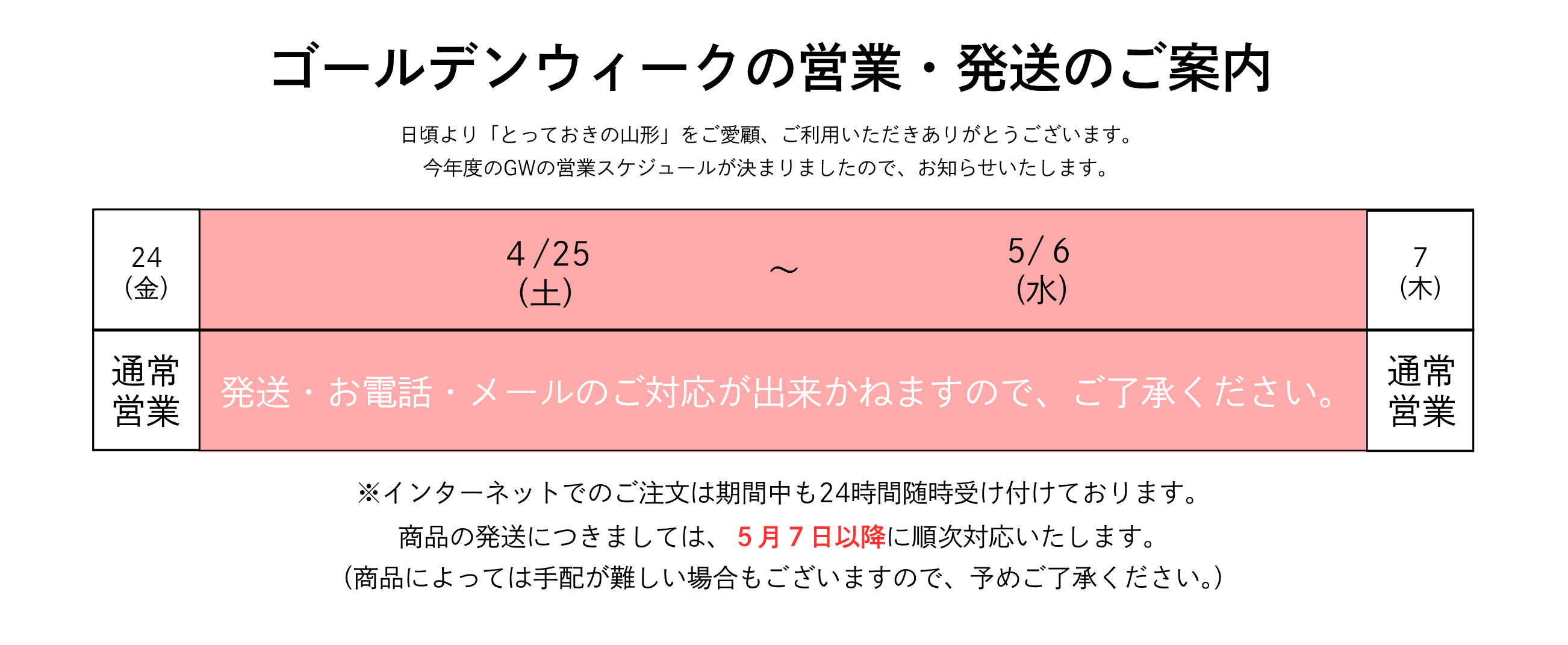 ただいま「とっておきの山形」で商品本体代金3,000円(税込)以上(1配送先ごと)のご購入で、お届けの際の送料が無料になります!