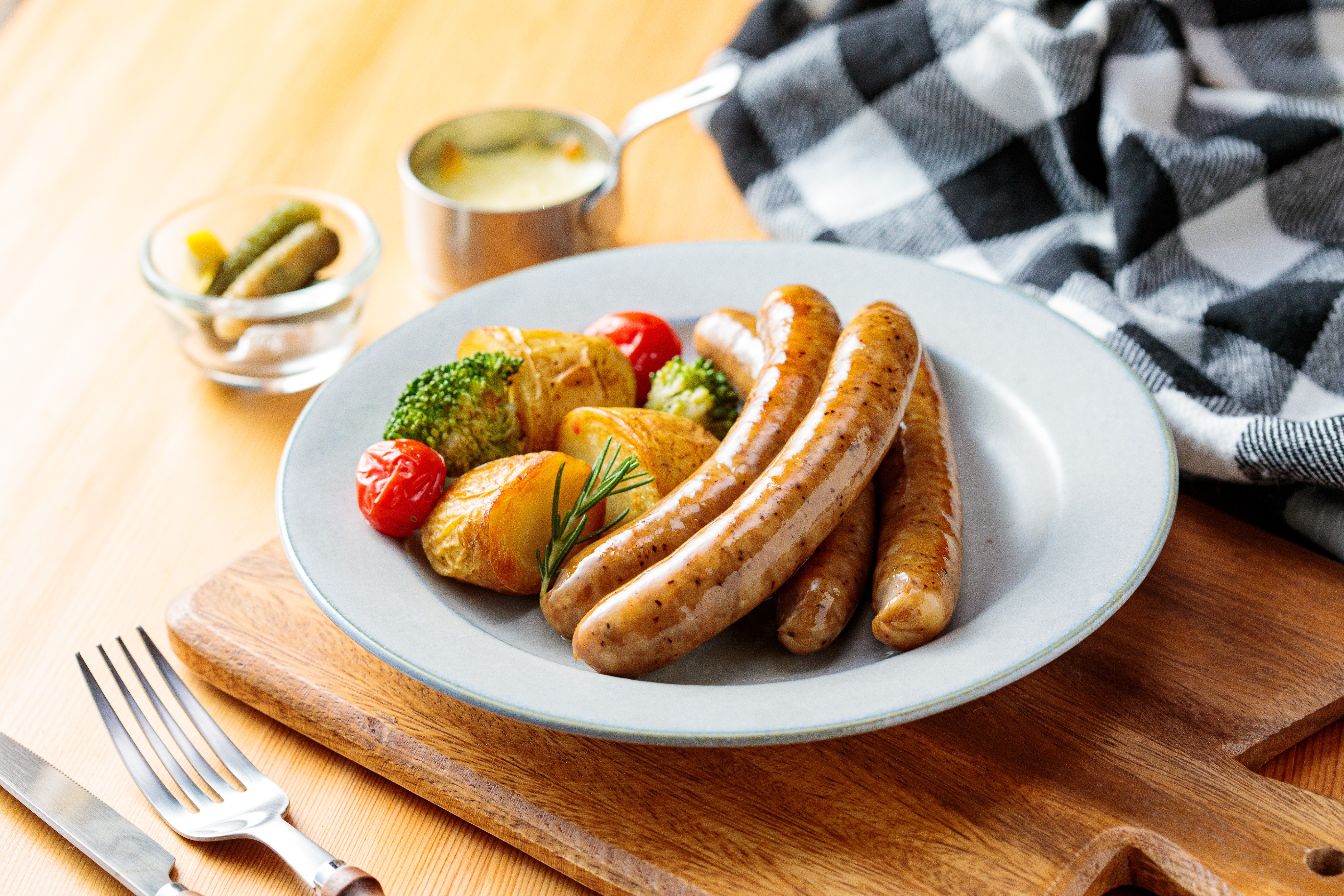 【原材料】 あらびきウィンナー:豚肉(国産)、豚脂、香辛料、玉ネギ、食塩、砂糖
